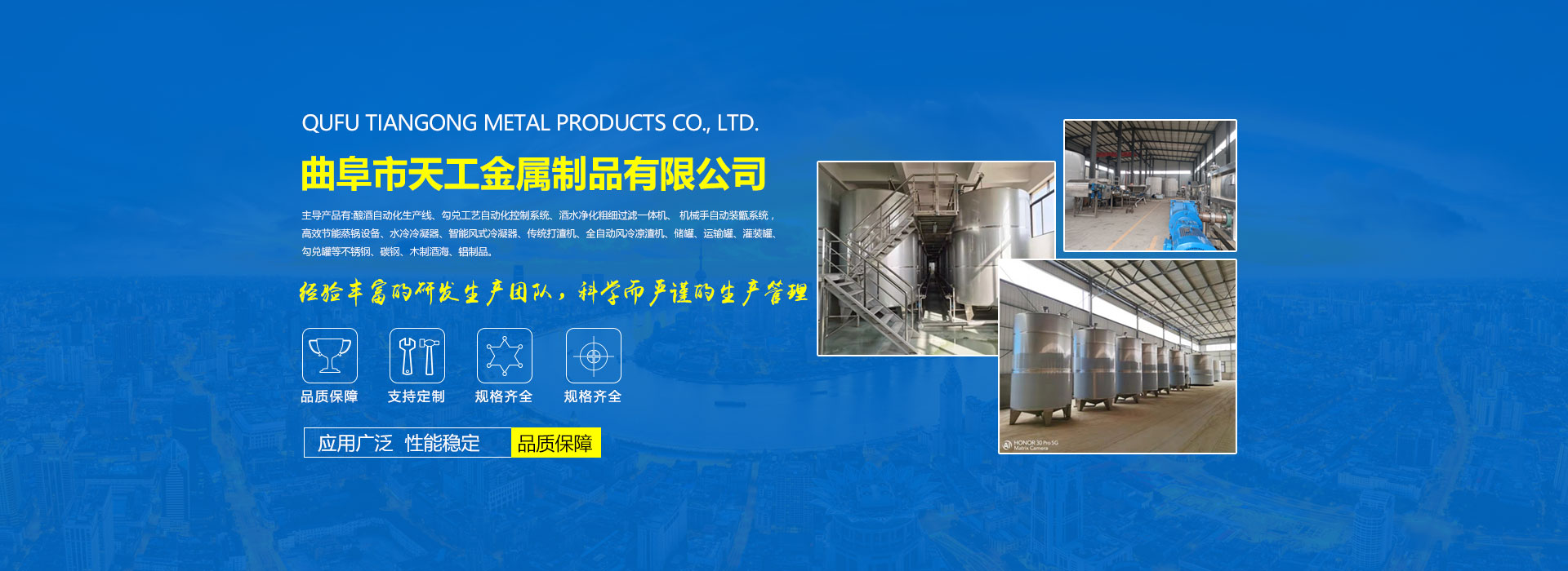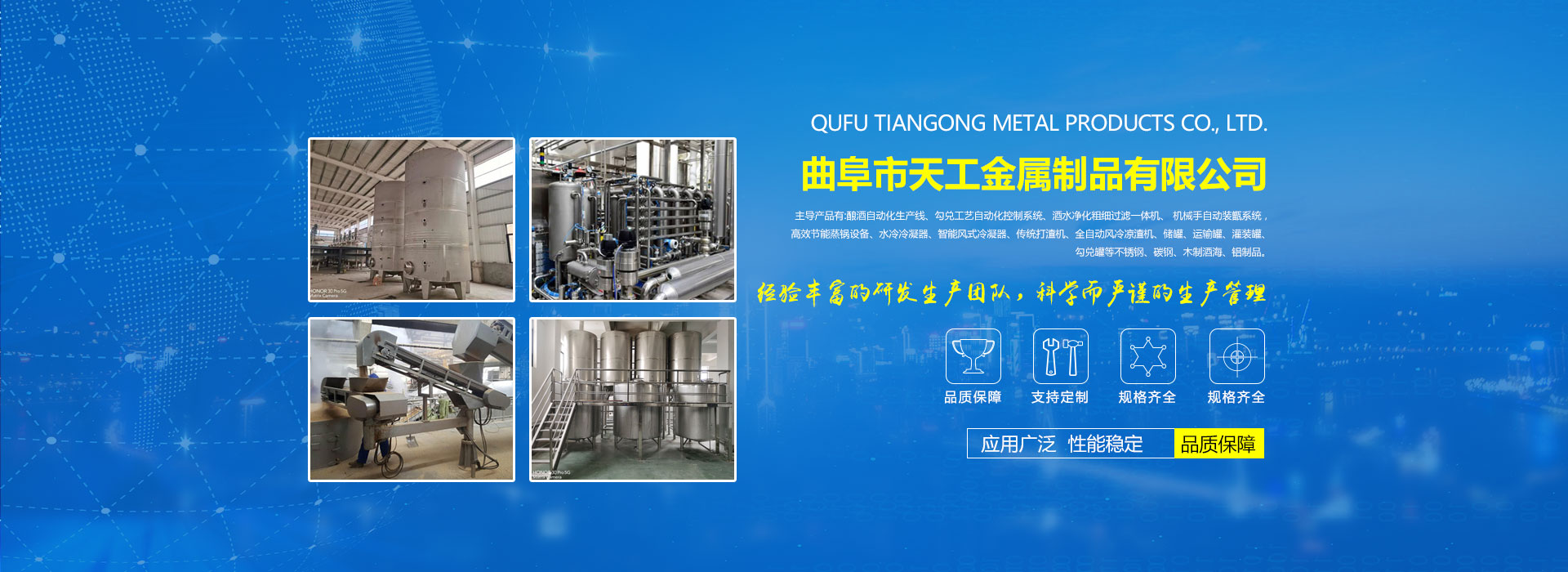 本公司是專業(yè)生產(chǎn)不銹鋼酒罐、不銹鋼釀造設(shè)備、不銹鋼發(fā)酵罐、釀酒、食品、生物、化工、環(huán)保設(shè)備、制藥設(shè)備的廠家。主導(dǎo)產(chǎn)品有:釀酒自動化生產(chǎn)線、勾兌工藝自動化控制系統(tǒng)、酒水凈化粗細(xì)過濾一體機(jī)、?機(jī)械手自動裝甑系統(tǒng),高效節(jié)能蒸鍋設(shè)備、水冷冷凝器、智能風(fēng)式冷凝器、傳統(tǒng)打渣機(jī)、全自動風(fēng)冷涼渣機(jī)、儲罐、運輸罐、灌裝罐、勾兌罐等不銹鋼、碳鋼、木制酒海、鋁制品。各種反應(yīng)釜、發(fā)酵罐、提取罐、氣體混合罐、烘干設(shè)備等大中型設(shè)備安裝,平臺制作、工藝管線制作安裝,容器設(shè)備內(nèi)外防腐保溫。產(chǎn)品規(guī)格齊全,質(zhì)量可靠。